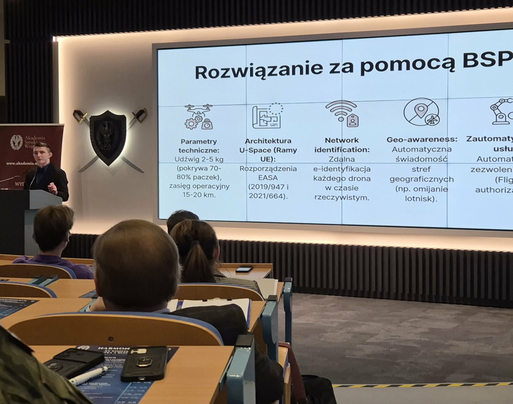 i zaangażowaną reprezentację ZSZ Nr 1. Uczestnicy mieli również okazję wysłuchać wystąpień konkursowych w panelach studenckim i wojskowym, obejmujących zagadnienia nowoczesnych technologii, logistyki wojskowej oraz bezpieczeństwa w warunkach współczesnych zagrożeń.