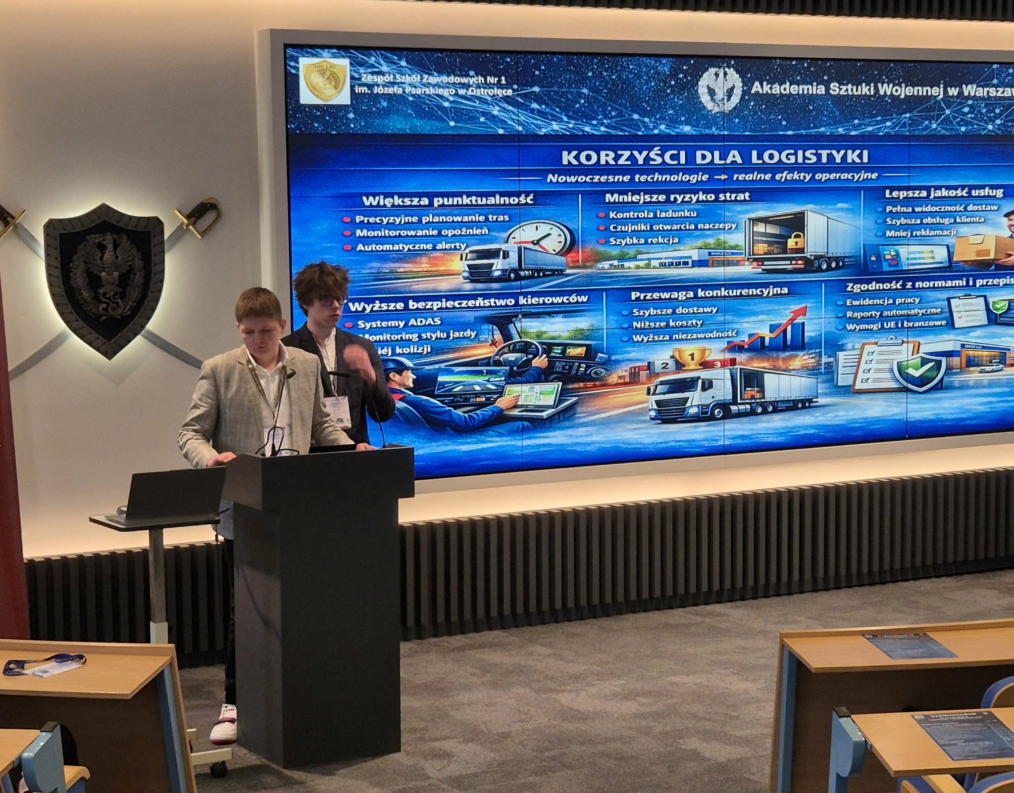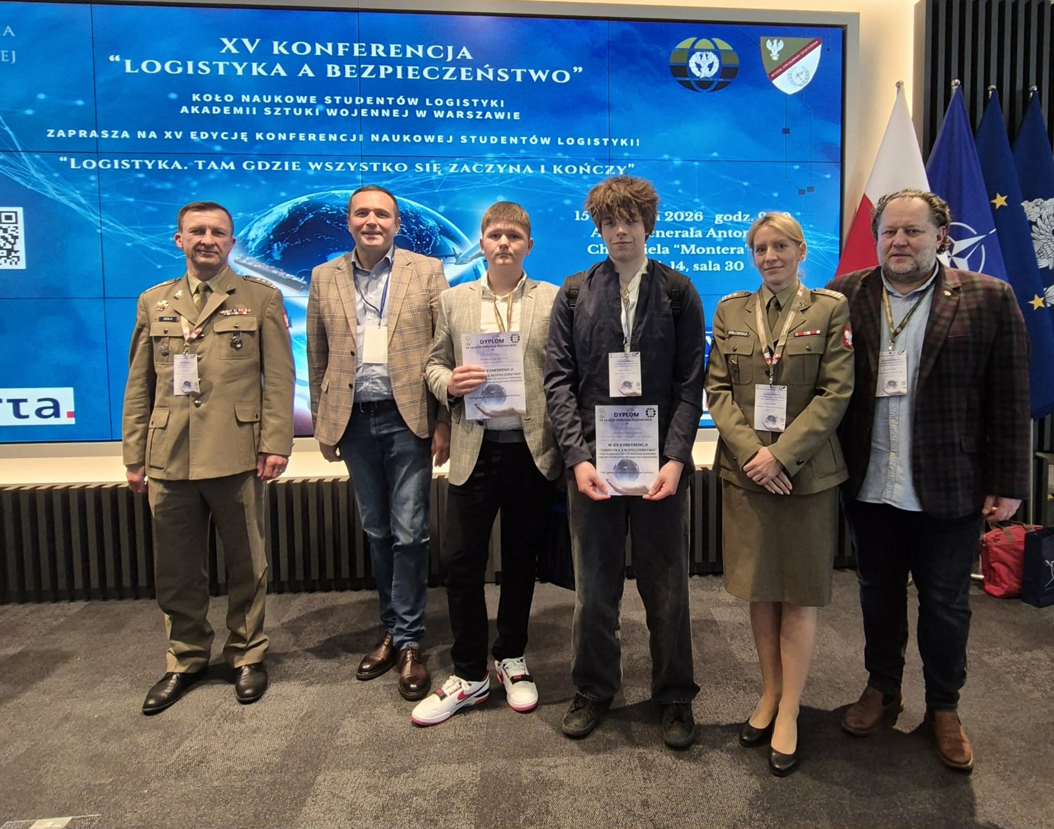 Gratulujemy naszym uczniom sukcesu oraz profesjonalnej prezentacji przed wymagającym gremium, w którego skład wchodzili doktorzy i profesorowie Akademii Sztuki Wojennej, przedstawiciele władz Wydziału Zarządzania i Dowodzenia, a także liczne grono nauczycieli i uczniów szkół logistycznych oraz studentów i wykładowców akademickich reprezentujących uczelnie uczestniczące w konferencji.
