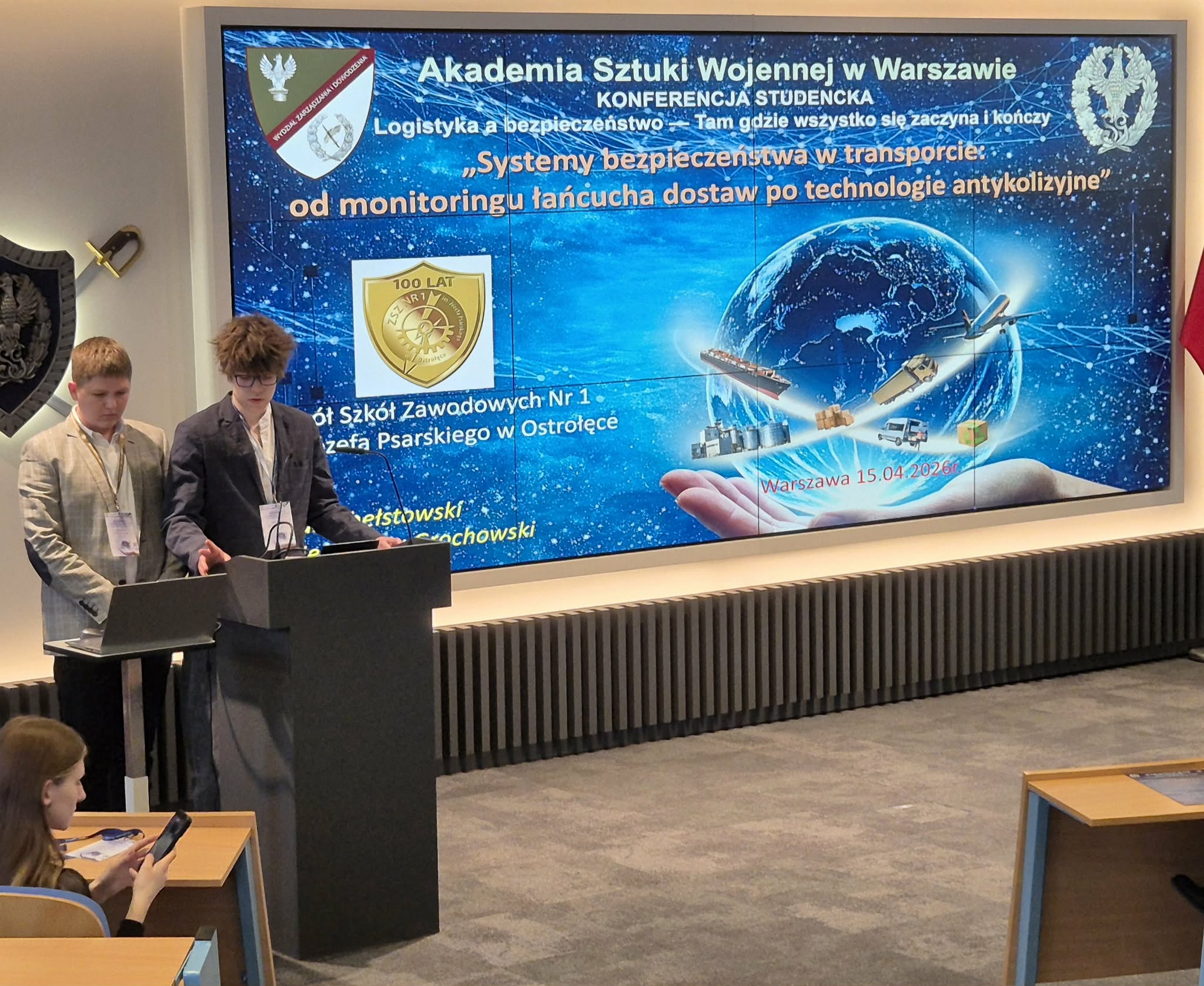 15 kwietnia 2026 r. uczniowie Zespołu Szkół Zawodowych Nr 1 im. Józefa Psarskiego w Ostrołęce uczestniczyli w prestiżowej XV Konferencji Studenckiej „Logistyka a bezpieczeństwo – Tam gdzie wszystko się zaczyna i kończy”, organizowanej przez Koło Naukowe Studentów Logistyki Akademii Sztuki Wojennej. Wydarzenie otworzyły władze Wydziału Zarządzania i Dowodzenia, na czele z dziekanem płk dr. hab. inż. Dariuszem Gralą, co dodatkowo podkreśliło rangę konferencji w środowisku logistycznym.