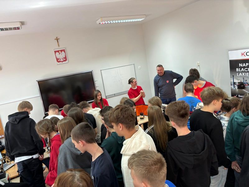 Trwa promocja szkolnictwa branżowego. 21 kwietnia odwiedziliśmy uczniów ze szkoły podstawowej w Łęgu Przedmiejskim. Nasi nauczyciele i uczniowie opowiedzieli o kierunkach, w jakich można kształcić się w technikum i szkole branżowej w ostrołęckiej Metalówce, o zagranicznych stażach i praktykach, patronatach i współpracy z pracodawcami, kołach zainteresowań i pomocy psychologiczno – pedagogicznej.